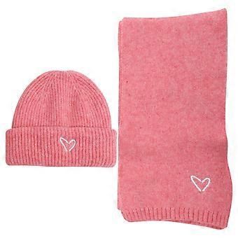 Warm Hat and Scarf Set for Little Pink with Embroidered Heart 1Set