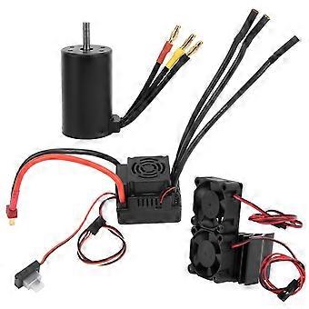 Waterproof 3660 3800KV Brushless Motor 80A Brushless ESC Heatsink Combo Set for 1/8 RC Car