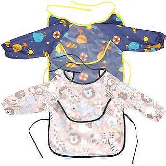 Waterproof Baby Sleeved Bibs Toddler Painting Cotton Assorted Color Prevent Staining 2Set