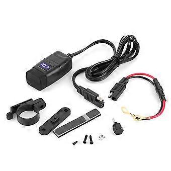 Waterproof Square Head Dual USB Phone Fast Charging QC3.0 Off Switch LED Digital Display VoltmeterBlue