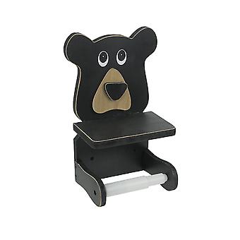 Whimsical Hand Painted Black Bear Wooden Toilet Paper Roll Holder With Phone Shelf