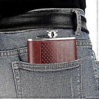Whiskey Flask With American Flag For Liquor And Funnel, 8 Oz Leak Proof Stainless Steel Pocket Hip Flask With Soft Touch Leather Cover, Brown Flask Fo