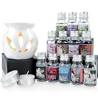 White ceramic diffuser with 12 fragrances and tealight candles