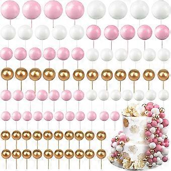 (White + Gold + Pink) Ball topper, 108 mini cake toppers, cake decorating ball cup cake topper, DIY insert cake topper for dessert cake decoration, we