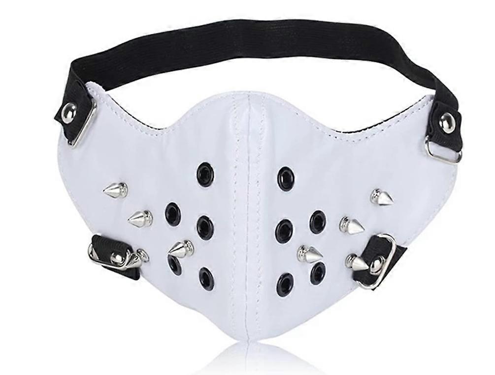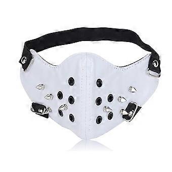 Vit lädermask med nitar och justerbara remmar