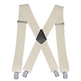 White Men's Suspenders Wide Suspenders Adjustable Elastic Men's Suspenders with Strong Clips, 5 cm wide, 120 cm long