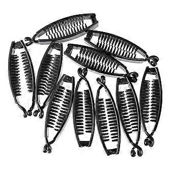 Wide Shiny Banana Hair Clips 10pcs Set for Fine Tension Ponytails, Half Up Styles, Smooth Varnish Finish, Durable Hair Claw Holders