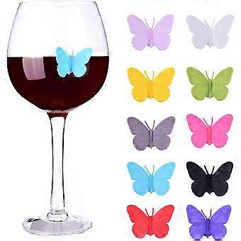 Wine Glass Markers Set of 10 Silicone Drink Glass Charms &Wine Charm Tags with Suction Cup (Butterfly)
