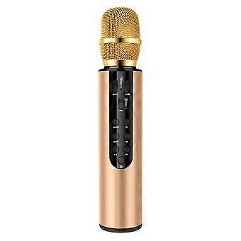 Wireless Bluetooth Microphone Dual Speaker Condenser Microphone Portable Karaoke Mic for Live Streaming Speech Gold