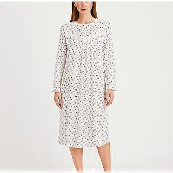 Womens Cotton Long Sleeve Nightie Gown Pyjamas Sleepwear PJ in White/Purple