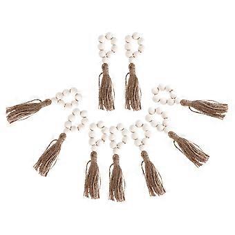 Wood Bead Napkin Rings for Home Decor and Table Decoration 8 Pcs 2 Sets Beige