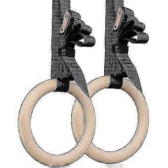 Wood Gymnastic Rings With Adjustable Straps For Cross-training Workouts Gymnastics And Conditioning