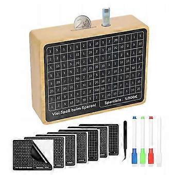 Wood Money Box with Euro Target Number Sticker Marker Pen Large Capacity Piggy Bank Coin Cash