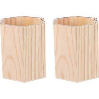 Wood Pencil Holder Brush Container Holder Desktop Wooden Container Multi Use Holder for Home Office DIY (Hexagon Tube)