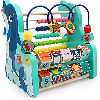 Wooden bead maze toy with abacus for toddler animals