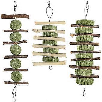 Small pets' teeth grow quickly, need to give your pet some toys that can grind their teeth. This rabbit chew toy is moderately hard and your pet will enjoy pushing, rolling and grinding their teeth with it. Let your pet grind its teeth while eating to avoid your pet biting other things at will. Perfect for your pet to play, grind and chew. Features -Color:Multi -Material:Wood - Size: 25.00X10.00X4.00cm/9.82X3.93X1.57in -The guinea pig chew toy is made of quality high-grade materials, comforting teething toys are durable. -Perfect for pet hamsters, guinea pigs, rabbits and other small furry animals. Give your pet better companionship. -With safety in mind, pets can chew on their own, or guide small animals to chew or act as a toy feeder. -Oral Chew Toy multifunctional design, rabbit chew toy can also help small pets keep their teeth clean and healthy. -Because hamsters love to chew, this safe and durable animal chew toy is perfect for their needs. Package list: 3 x Pet Toys