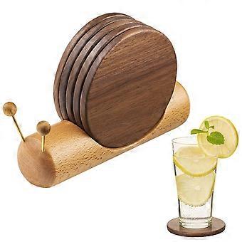 Wooden Cups for Beverages - Set of 4 Wooden Drink Coasters for Coffee Table, Rustic Style Home Decor