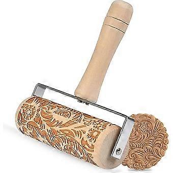 Wooden embossed 3D carved roller needle (rattan flower), push type metal bearing Christmas embossed roller needle, pattern used for Font cake stick bi