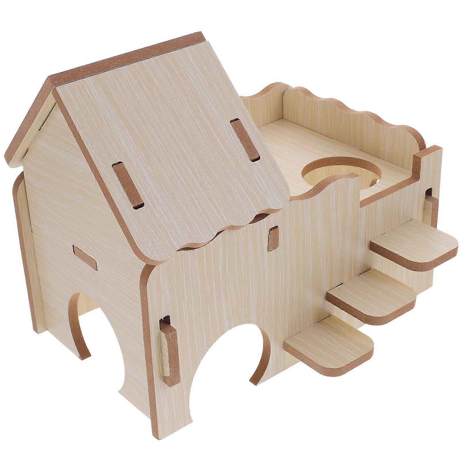 Wooden Hamster House for Kids Use Khaki Color Durable and Safe Toy Set for Small Pets 6.2x4.7x4.3