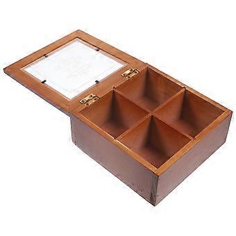 Wooden Jewelry Box with 4 Grid Compartments for Earrings and Trinkets Light Brown Portable Storage Solution