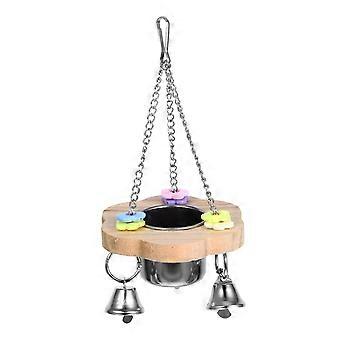 Wooden Molar Hanging Feeder for Parrots, Interactive Bowl for Small Birds, Promotes Exercise, Safe Material, Random Color