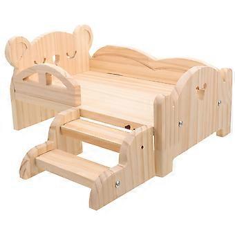 Wooden Pet Bed with Stairs for Small Animals like Guinea Pigs Hamsters in Light Yellow 1 Set
