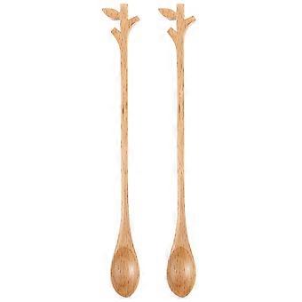 Wooden Stirring Spoons Set of 2 Long Handle Natural Branch Design Coffee Stirrer for Honey Beverages Safe Wood Material Mix Drinks Scoop