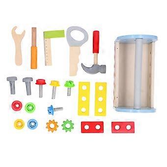 Wooden Tool Toy Box DIY Educational Realistic Screwing Removing Nuts Wood Tool Building Box Kit for Children European Tool Basket