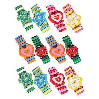 Wooden Toy Watch Watch for Boys Playing with 48Pcs Cartoon Design