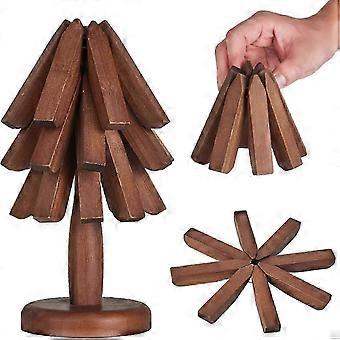 Wooden Trivets for Hot Dishes, Tree Shape Trivet Set,Trivets for Hot Dishes - 3 Wooden Trivet + 1 StandBeech Wood
