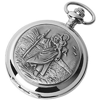 Woodford St Christopher Chrome Plated Double Full Hunter Skeleton Pocket Watch - Silver