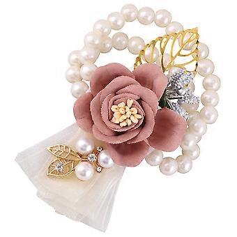 Wrist Flower Wedding Corsage Elegant Style Multi Color Silk Cloth Pearls Embellishments 1Pack