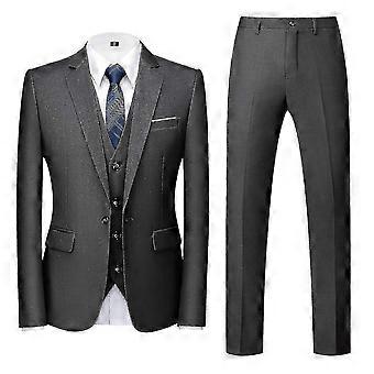 (Xs Grey) Men's 3 Pieces Elegant Solid One Button Slim Fit Suit Sets-b