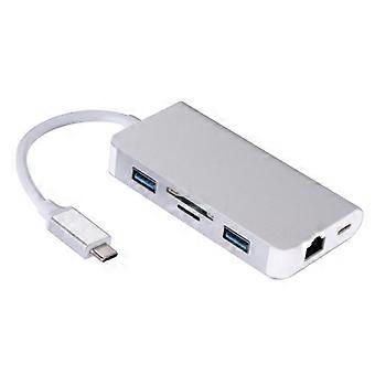 ZRUXE HB-262 6 in 1 Type C USB 3.0 Hubs Type C to 2xUSB3.0 RJ45 SD TF PD Card Charging Port Adapter Cable Converter for Macbook Laptop