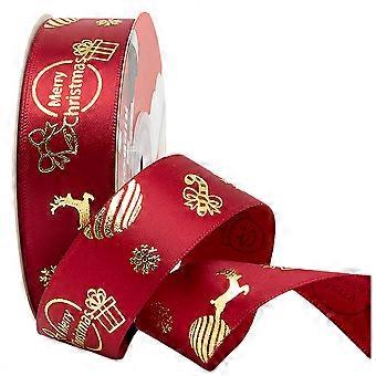 Ribbon With 'merry Christmas' Design - Perfect For Crafts And Gift Wrapping - Red - 9.1m Long And 2c