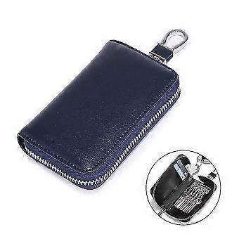 Leather Car Key Case Car Key Chain Protective Cover Zipper Bag, Multifunctional Home Key Case, Blue